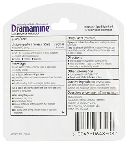 -. Title : Dramamine Less Drowsy Formula 25mg Tablets, 2 pk