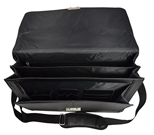 -. Brand : Kenneth Cole REACTION -. Color : Black -. Department : mens -. EAN : 0386785675559 -. Feature : Rich top grain nappa leather exterior. Genuine top grain leather exterior with double gusset flapover construction, secure lock closure, and fully lined interior. / Roomy double gusset construction with secure flapover closure. Modern metal lock slides to the right to open. / Front pocket organizer for cell phone and other accessories. Spacious front open compartment. Rear compartment with full length zipper pocket / Easy access rear exterior open pocket / Removable, adjustable padded shoulder strap -. Model : 67118 -. MPN : TT-KC522965-BLKY-CA -. PackageQuantity : 1 -. PartNumber : TT-KC522965-BLKY-CA -. ProductGroup : Apparel -. ProductTypeName : LAGE -. Size : One Size -. Title : Kenneth Cole "The Flap-py Gilmore" Double Gusset Leather Flapover Briefcase/Portafolio Black -. UPC : 386785675559