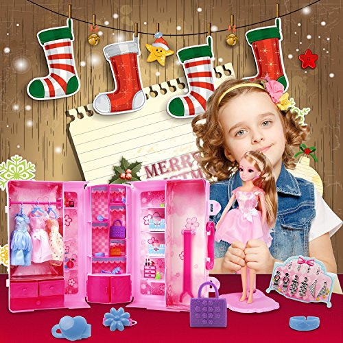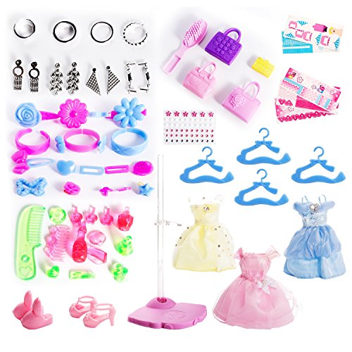 GREAT PRETEND PLAYSET FOR THE COSTUME PARTY: Girls can dress up dolls with glittery party dresses, jewelries, hair accessories and other trendy items. They can create unlimited looks for dolls with their imaginations. Wonderful gift for 4 year old to 8 year old girls.
