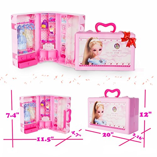 PORTABLE & EASY TO STORAGE: This closet case is designed for easy carrying while traveling, girls can enjoy fun with it anytime and anywhere, both perfect for indoor and outdoor activities. Keeps girl's dream doll world organized.
