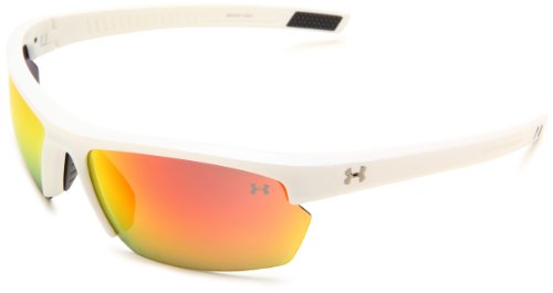 Under Armour Under Armour Stride XL Rectangle Sunglasses, Shiny White Frame/Gray & Orange Multiflection Lens, One Size