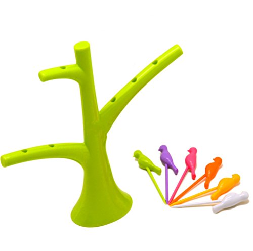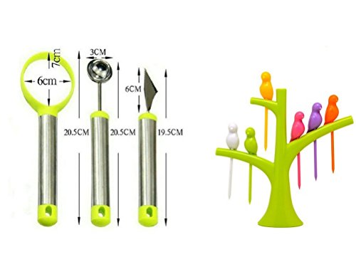Cocobuy Fruit Carving Tool Melon Baller & Carving Knife & Melon Peeler Set with 6 Pcs Creative Bird Fruit Forks Skewers (Green)