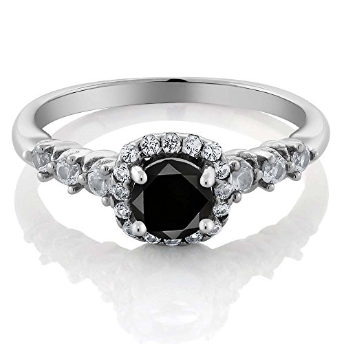 -. Title : 0.97 Ct Round Black Diamond and White Created Sapphire 925 Sterling Silver Engagement Ring (Available in size 5, 6, 7, 8, 9)