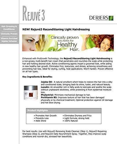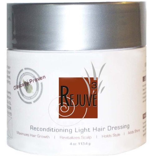 Rejuvé3 Reconditioning Light Hair Dressing Enhanced with ProGrowth Technology, this non-greasy light hair dressing (solid oil) penetrates and nourishes the scalp, while protecting hair and holding desired style, without clogging the pores like other styling products.