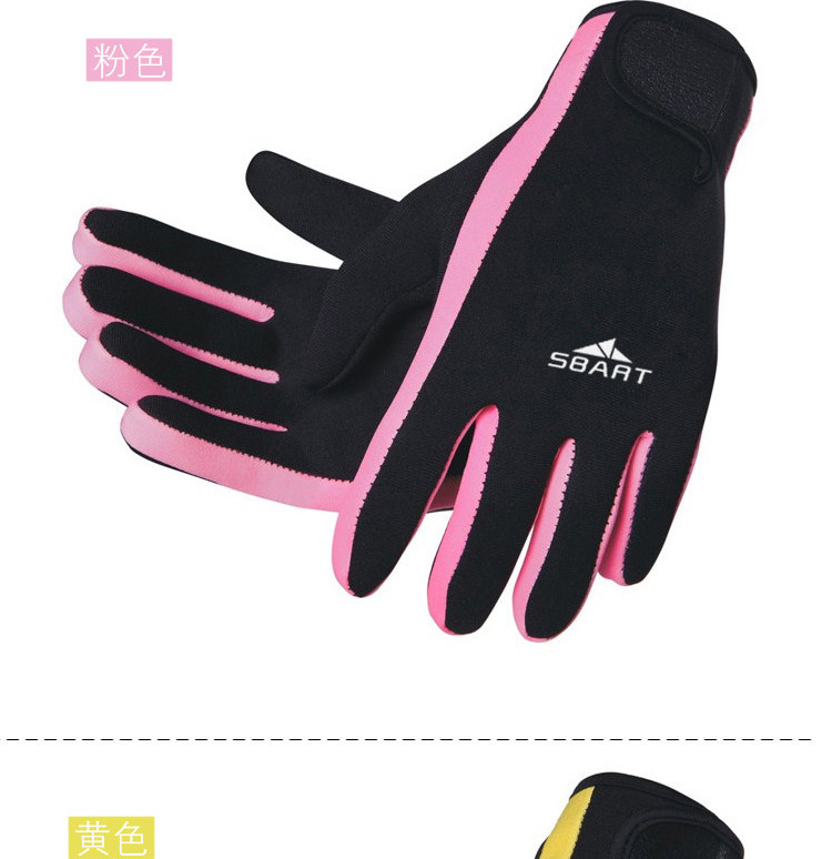 [Brand] Sbart / shark Bart ?[Name] type wear diving gloves 3MM thick [Color] black, pink, yellow, blue [Code number] XS, S, M, L. Small hands women choose XS code, ordinary women can choose the S code, ordinary men choose M code, a large male hand can choose L code. [Applications] can play a hand was warm and prevent coral cuts and other travel time for diving. [Features] with velcro, firmly stick to bowl in hand, very easy to use. The need to protect the hand when diving at temperatures warmer waters have to protect hands against the sharp coral cuts. General knit gloves in between the threads sparse gap can not be prevented through stinging cells, so the lack of more complete protection.