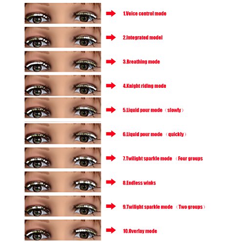 -. Binding : Misc. -. Brand : WallyDeals -. Feature : APPLICATION SCENE: When sounds arise, the LED Eyelashes flashes and changes mode based on different rhythm, it is perfectly fit for all kinds of Party Festivals Bar Night Club Concert Stage Gift Halloween Day Rave and Shows Activities / SAFE AND LIGHTWEIGHT: Using medical instruments LED chip, Microcomputer program control, Low color temperature, will not heat up, no harm to eyes,10 grams,seems like feathers / 10 MODES SWITCH: Press the button 3-4seconds, the light turn on. press again, then another flash modes. Press the button 3-4 seconds again, the light turn off / EASY TO WEAR AND REMOVE: Just using the lash adhesive and stick it on your eyelid . Unique clip can be attached behind head hair or clothes / LONG BATTERY WORK TIME: 24 months Warranty and a lifetime friendly customer service. LED False Eyelashes that Included 1XCR2032 the battery can last up to 140 hours, led chip SMD0603 lifespan over 5-10 years. You can replace with a new CR2032 battery if it runs out -. Label : WallyDeals -. Manufacturer : WallyDeals -. ProductGroup : Beauty -. ProductTypeName : BEAUTY -. Publisher : WallyDeals -. Studio : WallyDeals -. Title : LED Eyelashes Light with 10 modes Unisex Flashes Interactive Changing LED False Lashes Shining Eyeliner Perfect for Party Bar Nightclub Rave Halloween Christmas and Birthday