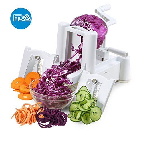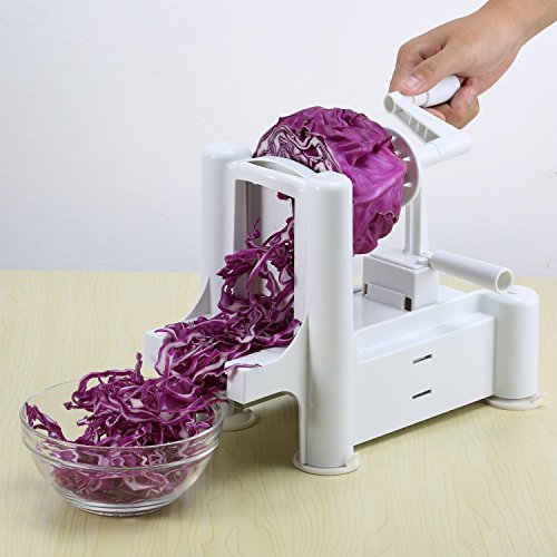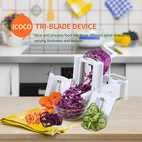 ICOCO Spiral Slicer Cutter FDA Approved With Tri-Blade for Vegetable Slicer, Onion Chopper, Fruit and Cheese Cutter Container Vegetable in Home and Kitchen