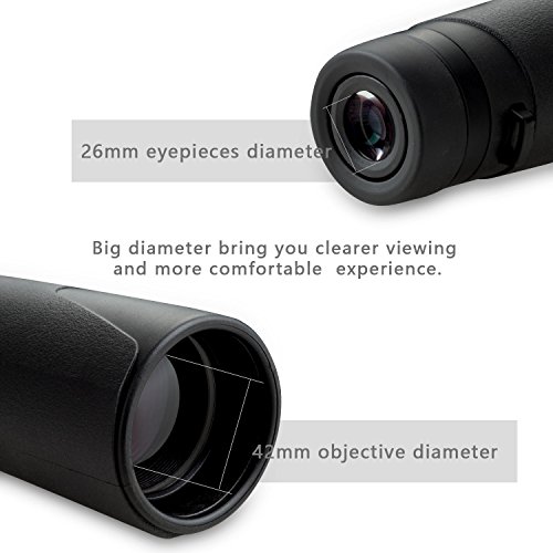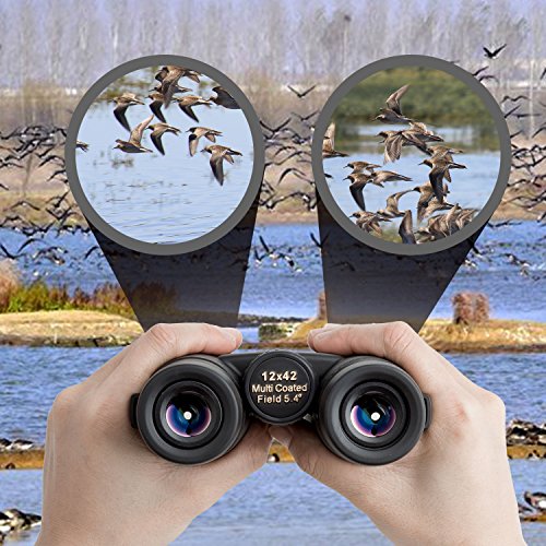 -. Feature : WONDERFUL VIEWING EXPERIENCE - 12 x magnification power, 42mm objective lens diameter, 21mm eye pieces, 308 ft/1, 094Yds(94M/1, 000M), great for focus on fast-moving subjects, seeing everything even the moon and the stars in HD. / UPGRADE FOGPROOF & WATERPROOF - Specially designed for outdoor use, suitable size for hand held, weight fits for travel and for its handsome appearance also be a wonderful gift for your family and friends. / SUITABLE FOR NORMAL VISION OR MYOPIC CUSTOMERS - Perfect for glasses wearer. For myopic customers you can push the eyepiece. If your eyes have a different vision, for eye observation, please re-adjust the parallax wheel. / DURABLE QUALITY - Durable, stable with eyepiece and lens protection covers, high quality rubber non-slip handle. FMC multilayer coating for clear image and visual comfortable. / WARRANTY AND PACKAGE - One year valid warranty, any quality is. Package with 1 x binoculars, 1 x strap, 1 x carrying bag. The bag can be used for storage and the strap can be hung the mini binoculars around the neck.