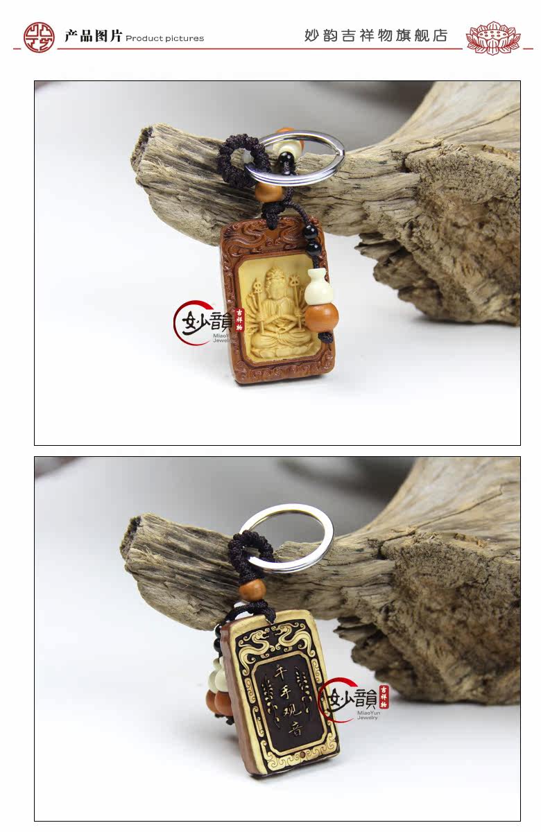 开光黄梨木千手观音菩萨生肖鼠本命佛守护神钥匙扣饰品
