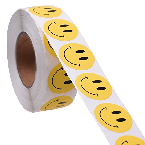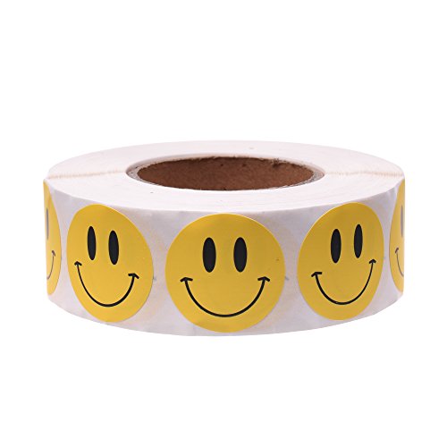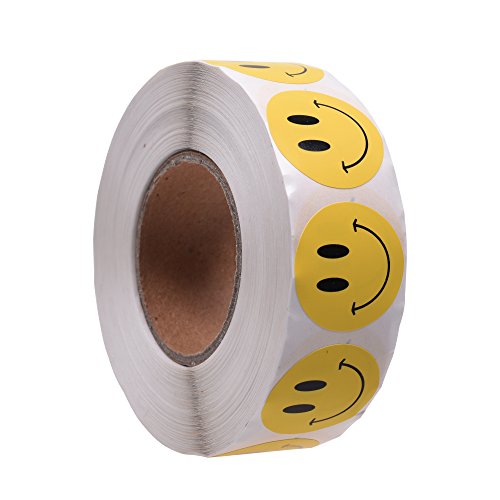 BCP 1 inch Round Yellow Smiley Face Happy Stickers/ Color Coding Labels-1000pcs per Roll