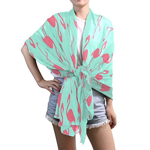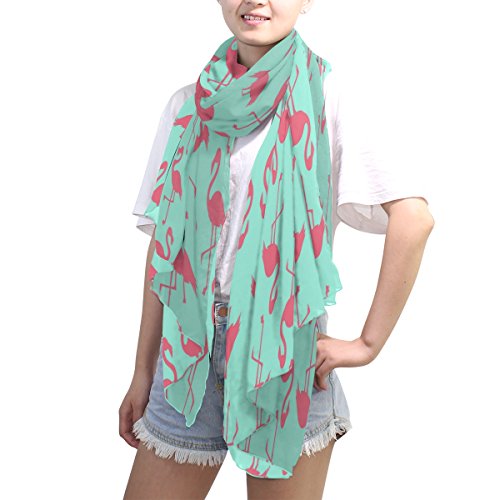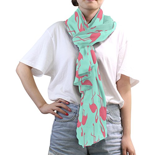 (ALAZA)/Accessories/Cold Weather Accessories/DIRECT FROM USA/ALAZA Blue Pink Flamingo Chiffon Silk Long Scarf Shawl Wrap