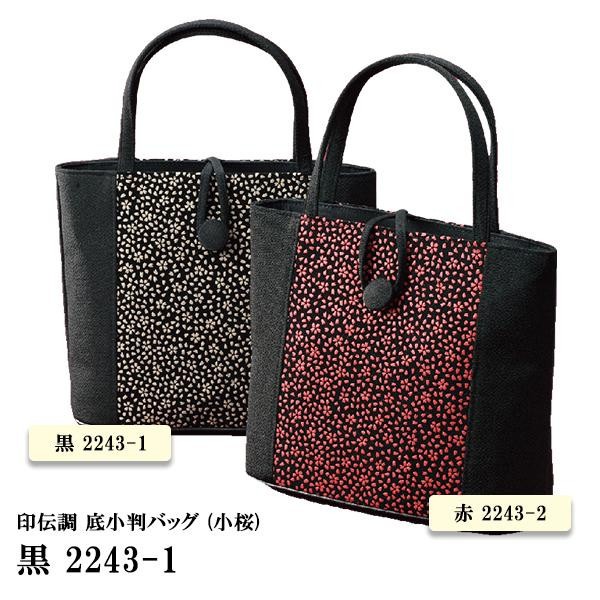 伝統的な模様が上品な、印伝調のバッグです。 製造国:日本 素材・材質:レーヨン100% 商品サイズ:高さ22×幅29×マチ11cm ※サプライヤー直送品 ※2019年1月中旬入荷分予約受付中【商品名】印伝調 底小判バッグ (小桜) 黒 2243-1