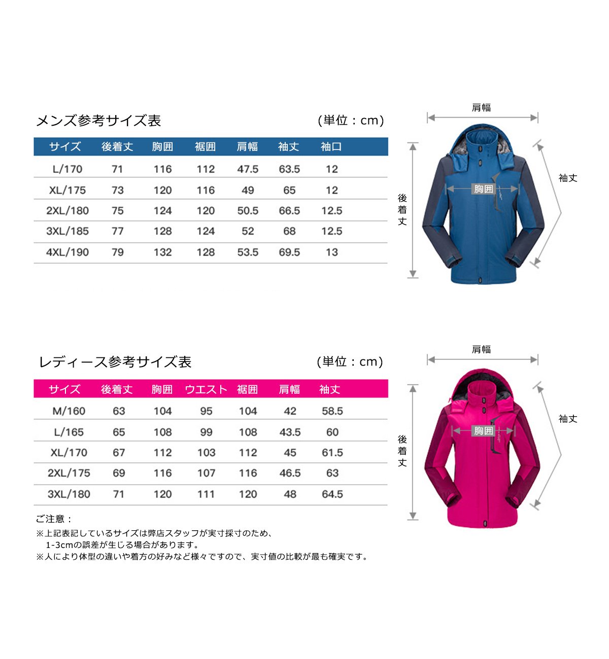 Reference size chart (※ ± error 2-3 cm)