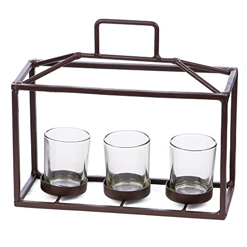 -. Title : Skalny Brown Rectangle Metal & Glass 3 Tea Light Candle Holder, 9" x 3.5" x 5.5"