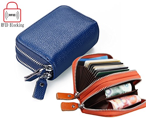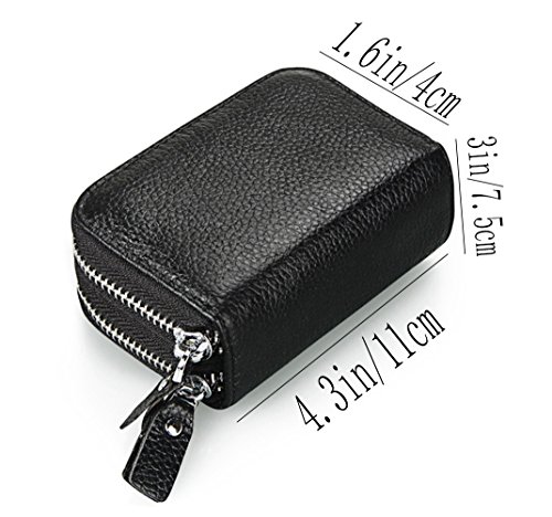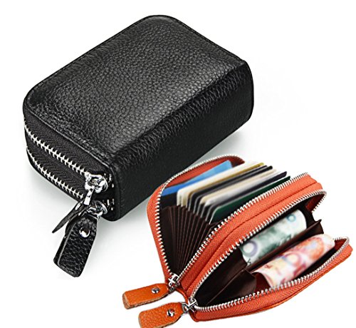 Binding : Apparel Product Description The RFID card wallet is well made of high quality leather, attractive, durable, and it is lined with high density polyester. The size is 4.3*3*1.6 inches (11*7.5*4cm), two zipper compartment: one has 11 separators for cards and the other has 2 separators for cashes or coins. The zippers closure keep cards from falling out, and looks daunting but actually runs very smoothly and it's sturdy. The RFID design will prevent more casual would be thieves that would steal your card info as you walked by though, as long as you keep them in your wallet. The wallet is great for small or big handbags and secures and organizes all your cards in one place. And it is a great Christmas gift for your friends, family members or couple. 0