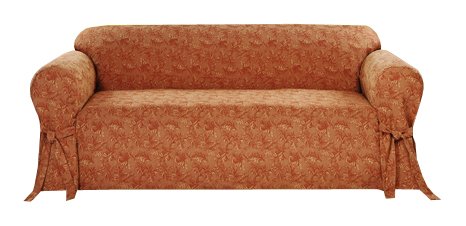 -. Feature : The one piece slipcover entirely covers most upholstered furniture and is sized generously so that excess fabric can be tucked into your furniture's crevices / Easy care, machine washable, cool water, no chlorine bleach, machine dryable at a cool setting / Color fast and will not fade even with repeated home launderings, when instructions are followed / Matching decorative pillows are available as well as other sizes of covers (chairs, loveseat, sofa) to complete your decorating scheme / Easy to put on