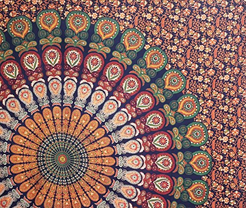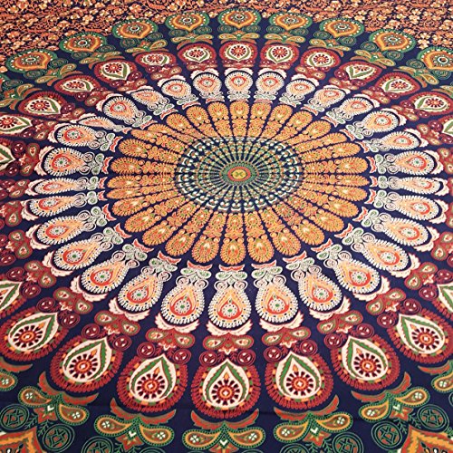MULTIMATE PECOCK TAPESTRY INDIAN MANDALA TAPESTRIES QUEEN INDIAN BEDDING COVERLET BOHEMIAN WALL DECORATION DORM TAPESTRIES BEACH THROWS AND SHEETS