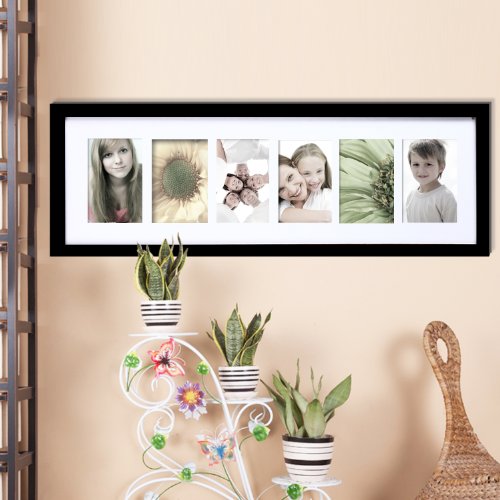 6 openings wood wall hanging picture photo frame; hanging on the Vertically or Horizontally)