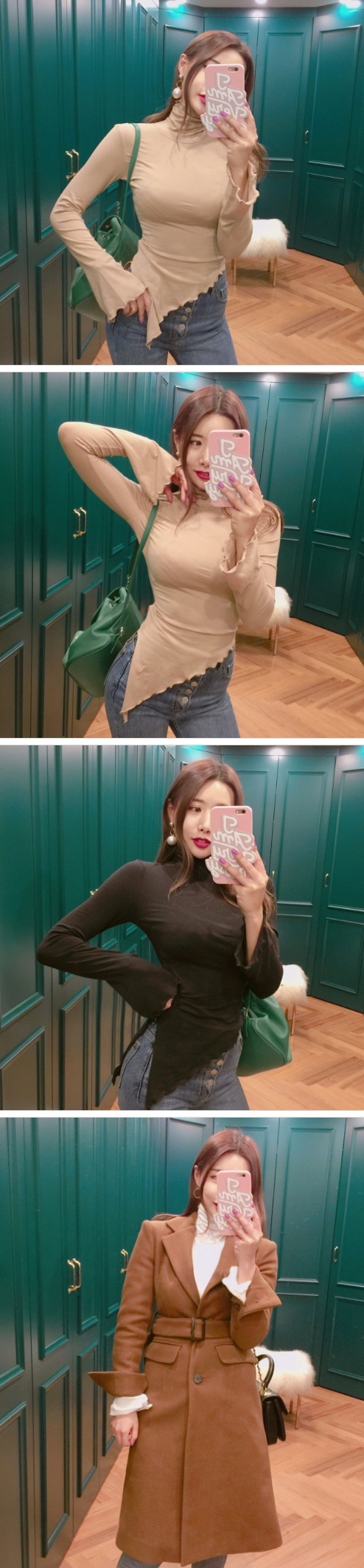 Women`s Asymmetric T-shirts Turtleneck T-shirts Black Burgundy Beige Ivory