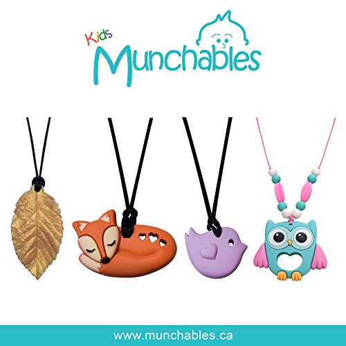 Studio : Munchables Publisher : Munchables Binding : Health and Beauty Product Description What are Munchables? Munchables offers a wide range of chewable accessories for kids that provide a safe alternative to chewing on collars, cuffs, and fingers. We specialize in chewelry that is both functional and stylish. How can Munchables help my child? Many children chew and it is our goal at Munchables to allow kids to do so without being stigmatized. Our accessories are fashionable, yet also act as inconspicuous sensory aides, which children can feel comfortable wearing in any situation. What Munchable is right for my child? We offer a wide range of items from necklaces and bracelets to pencil toppers and zipper pulls. There is sure to be an option that works for your child. Some styles, like the Yummy Gummy, Scribbles and Donut Pendant are better for heavier chewers due to their thickness and shape. We are continually adding new products. What if my child doesn't like their Munchable? We offer a 100% Satisfaction Guarantee - Love it or get your money back! It's that simple. What are Munchables made of? Every Munchable is made of 100% safe silicone; this means that that the products do not contain dangerous additives, such as BPA, lead and phthalates. When will my order arrive (if not fulfilled by Amazon)? Most orders arrive within 3-8 business days. Who is behind Munchables? Munchables is a small, family run company in Western Canada. My husband and I have poured our hearts into designing the highest-quality, most stylish chewelry on the market. If you have any questions, please reach out to me and I will get back to you as soon as I can. I'm here to help! 0
