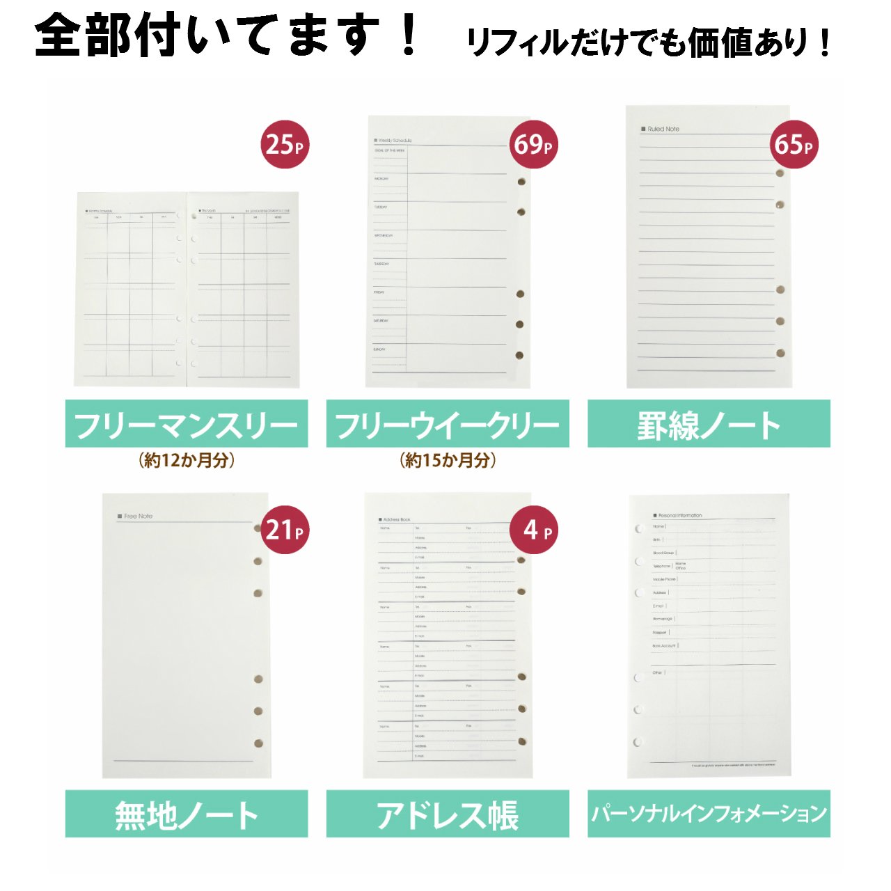 Red B6 pastel color Bible size Filofax Starter Set: 16㎝ ruler 4 colors Fusen set underlay clear pocket free monthly 25P (12 months) Free Weekly 69P (about 15 months) ruled notebook 65P plain notebook