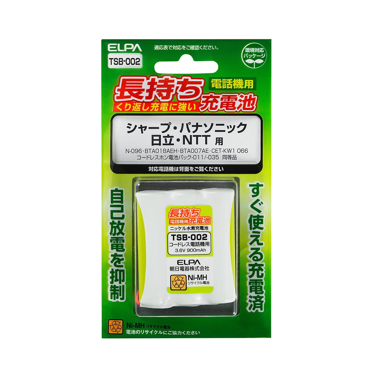 Applicable model: Sharp: N-096 · Panasonic: BTA018AEH / BTA007AE · Hitachi: CET-KW1 066 · NTT: cordless phone battery pack 011/035 equivalent