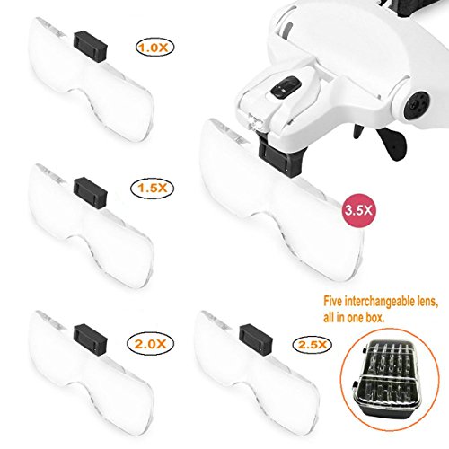 - Switch between 5 optical grade lenses using a simple click and release system. Magnification power: 1X, 1.5X, 2X, 2.5X, 3.5X