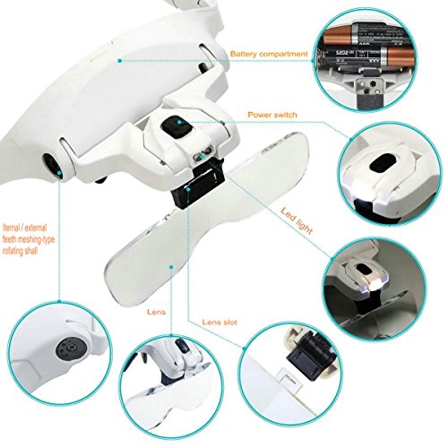 - Versatile headset best for examining intricate details in engravings, electronic parts, watches, jewellery, coins, stamps, hobbies and crafts
