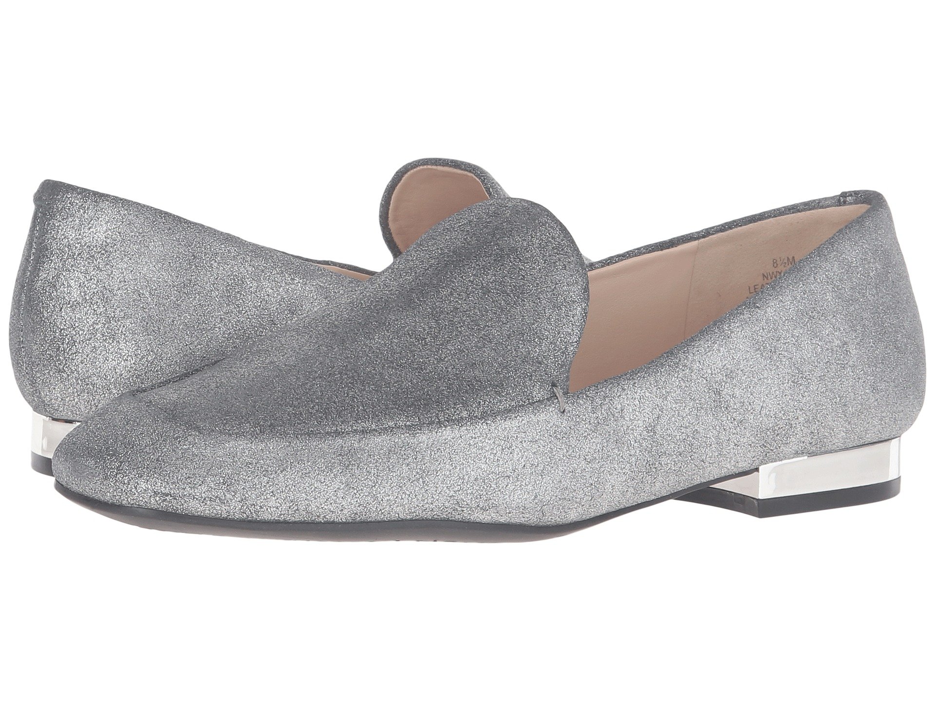 | Product Information SKU: #8769801These classic loafers will take you through the week in charming style, from the Nine West? collection. Synthetic upper.Slip-on wear.Round apron toe.Smooth man-made lining and insole.Metallic-covered heel.Man-made sole.Imported.Product measurements were taken using size 8, width M. Please note that measurements may vary by size.Weight of footwear is based on a single item, not a pair.Measurements: Heel Height: 3?4 in Weight: 7 oz |
