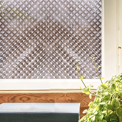 Rabbitgoo Mosaic Window Cling 17.7in. By 78.7in. Dark Window Film with Stained Glass Effect for Window Decor
