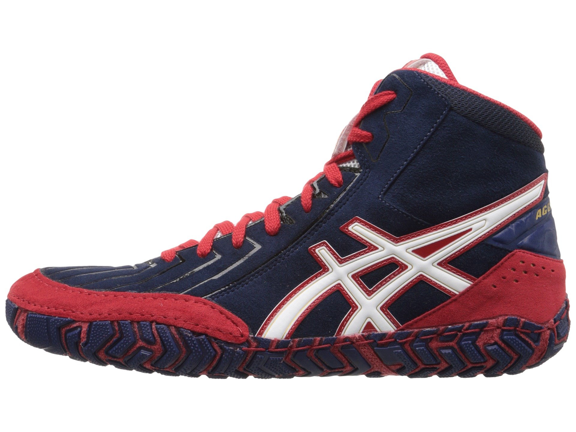 | Product Information SKU: #8699462Dominate the mat in the unmatched durability and heavy-hitting performance of the ASICS? Aggressor? 3 wrestling shoe.Re-designed suede escaine textile and synthetic uppers provide comfortable wear and lasting durability. Lace-up closure. No-scratch lace garage.Padded tongue and collar. Breathable fabric lining. Molded foam insole. Aggressive DuoSole? outsole reduces weight and enhances flexibility while maintaining traction and durability.Imported.Product measurements were taken using size 11, width D - Medium. Please note that measurements may vary by size.Weight of footwear is based on a single item, not a pair.Measurements: Weight: 12 oz |