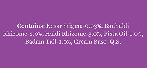 Kesar (Crocus sativus), Pista tail (Pistacia vera), Banhaldi (Curcuma aromatia), Badam (Prunus amygdalus), Haldi (Curcuma longa), Cream base Q.S.