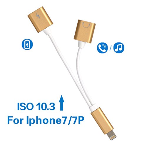-. Title : 2 in 1 Lightning Adapter for iPhone 7, Dual Lightning Headphone Audio & Charge Adapter for iPhone 7 / 7 Plus (Gold)