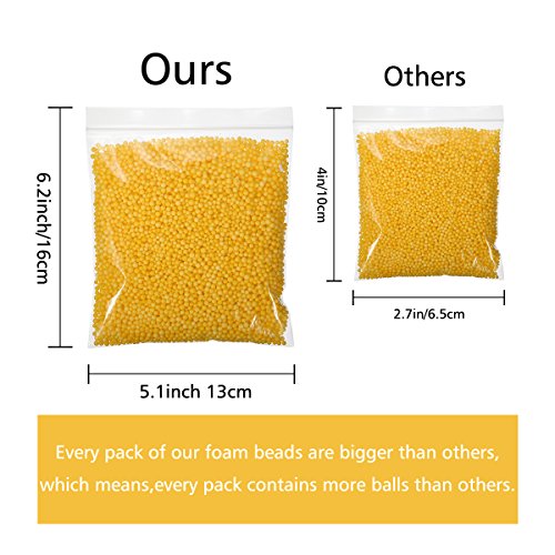 - ۞ The smooth foam balls, less flaky and more affordable than styrofoam, while firm, elastic and difficult to crush. It will keep the perfect sphere shape when you mix those foam balls into your slime.Colorful, smooth and not easy to crush, is a good choice for slime decorating.