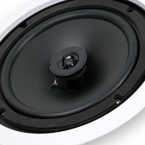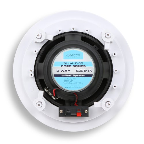 Note: This speaker is sold individually, not in pairs. Please buy two for a pair, or as many as needed. The Micca Core Series C-6C in-ceiling speakers bring amazing sound at an amazing low price to any room without taking up valuable space. Easy to install with only basic tools, Micca Core Series speakers blend unobtrusively into any decor and become virtually invisible when painted to match wall colors. Durable construction and materials make the Core Series suitable for use in any room of the house, including kitchens, bathrooms, sunrooms, and enclosed patios, providing years of lasting enjoyment. Each Micca Core Series in-wall/in-ceiling speaker utilizes a polypropylene cone woofer with rubber surround and a 1/2 inch PEI dome tweeter in a co-axial aligned arrangement. The exceptional vocal accuracy of the woofer and wide dispersion characteristics of the tweeter produces a larger sweet spot, producing enhanced sound stage imaging with excellent clarity. The Micca Core Series speakers are a showcase of adept engineering and expert tuning. Through skillful driver design and timbre matching within the critical crossover overlap, Core Series speakers deliver a balanced sound signature with incredible clarity, comparing favorably to competition that costs many times more. From background music to home theater applications, the Core Series is a budget friendly way to fill a room with high fidelity sound. Micca Core Series C-6C Specifications- Woofer: 6.5” Polypropylene Cone with Rubber Surround- Tweeter: 1/2” PEI Dome- Crossover: 6dB/Octave- Frequency Response: 55Hz-20kHz- Impedance: 8 Ohms- Sensitivity: 87dB 1W/1M- Power Handling: 75 Watts (Each)- Outer Dimension: 9” Diameter- Cutout Dimension: 7.75” Diameter- Mounting Depth: 3”