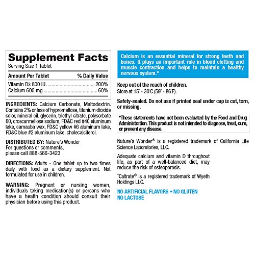-. Title : Nature's Wonder Calcium 600mg with Vitamin D3 800IU Tablets, 240 Count, Compare vs. Caltrate® 600 + D3