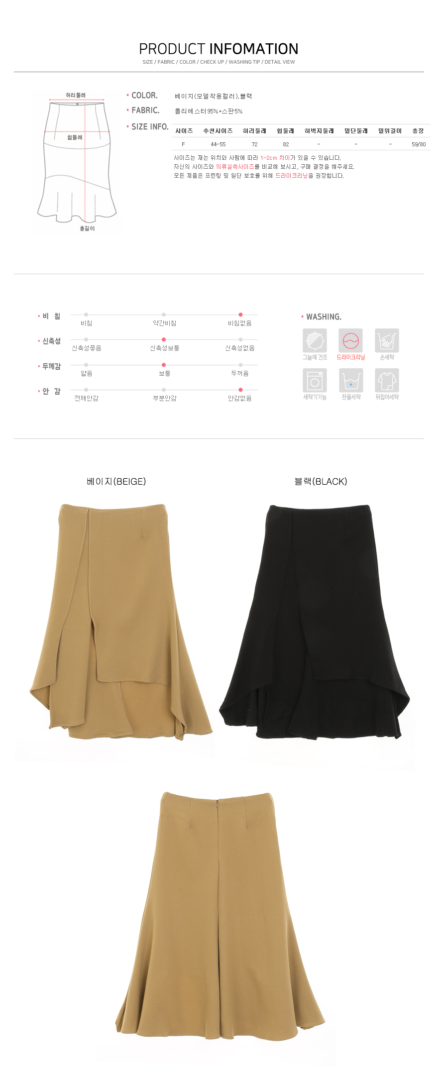 ![]() 밴드컷팅스커트 모델피팅 :베이지(BEIGE) 언발런스하게 떨어지는 실루엣이 예쁜 스커트에요. 군더더기 없이 깔끔하게 허리라인을 잡아주며, 하이웨스트 라인으로 다리를 더욱 길게 보여준답니다! 뒤 지퍼 여밈으로 간편하게 마무리 가능하세요. 언발런스하게 떨어지는 기장이 돋보이는데요~ 흔하지 않은 디자인으로 소장가치가 느껴지며, 심플한 탑 아이템과 매치하셔도 포인트가 된답니다~ 전체적으로 쫀쫀한 느낌의 원단으로 이루어져 있으며, 스판을 함유하고 있어 더욱 편안하게 입기 좋으실 거에요. 간편하게 멋내기 좋은 아이템으로 추천해 드려요. 베이지, 블랙 2 가지로 나왔어요. 모델은 베이지 색상을 착용하였답니다. Free 사이즈로 나와 44에서 55까지 분들께 추천해 드려요. 자세한 사이즈는 상세 사이즈 표를 참고해 주세요^^ ![]() ![]() ![]() ![]() ![]() ![]() ![]() ![]() ![]()