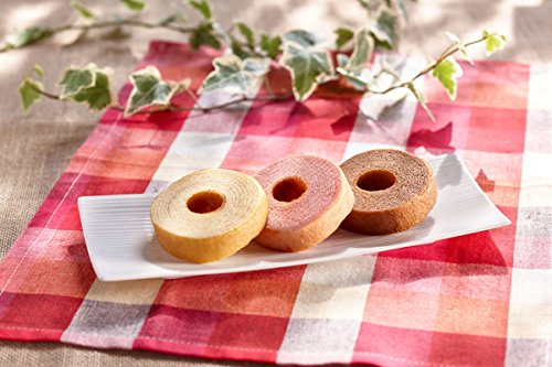 原材料:<バウムクーヘン ラズベリー>鶏卵、小麦粉、砂糖、ショートニング、水あめ、マーガリン、コーンスターチ、ラズベリー果汁加工品(果糖ぶどう糖液糖、ラズベリー濃縮果汁)、食用乳化油脂、乳化剤、膨張剤、ソルビトール、酸味料、香料、酒精、着色料(ラック、コロテノイド)、増粘剤(キサンタン)、安定剤(ペクチン)、pH調整剤、(原材料の一部に乳成分、大豆を含む)<バウムクーヘン プレーン>鶏卵、小麦粉、砂糖、ショートニング、水あめ、マーガリン、コーンスターチ、食用乳化油脂、乳化剤、膨張剤、ソルビトール、酸味料、香料、酒精、着色料(ラック、コロテノイド)、増粘剤(キサンタン)、安定剤(ペクチン)、pH調整剤、(原材料の一部に乳成分、大豆を含む)<バウムクーヘン ショコラ>鶏卵、小麦粉、砂糖、ショートニング、水あめ、マーガリン、コーンスターチ、準チョコレート、ココアパウダー、食用乳化油脂、乳化剤、膨張剤、ソルビトール、酸味料、香料、酒精、着色料(ラック、コロテノイド)、増粘剤(キサンタン)、安定剤(ペクチン)、pH調整剤、(原材料の一部に乳成分、大豆を含む)