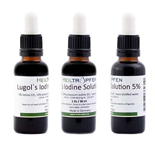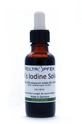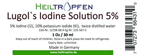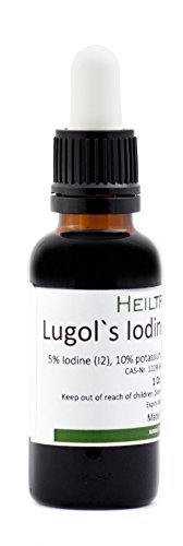 -. Binding : Health and Beauty -. Brand : Heiltropfen -. EAN : 0707273664310 -. Feature : Consisted of 5% of Iodine & 10% of Iodide in distilled water. Pharmaceutical grade. / Original Lugol's Iodine solution by the Jacques Lugol MD / Supports thyroid heath. / Each vertical drop is about 6.25 mg's of iodine and potassium iodide - 2.5 mg iodine and 3.75 mg potassium iodide. / Dropper Bottle - as a water purifier add 2-3 drops per liter of water. -. IsAdultProduct : 0 -. Label : S3 -. Manufacturer : S3 -. Model : 707273664310 -. MPN : 200-664-3 -. PackageQuantity : 1 -. PartNumber : 200-664-3 -. ProductGroup : Health and Beauty -. ProductTypeName : HEALTH_PERSONAL_CARE -. Publisher : S3 -. Studio : S3 -. Title : Lugol's Iodine Solution (1 Oz. - 30 ml). Made with 5% Iodine and 10% Potassium Iodide. -. UPC : 707273664310