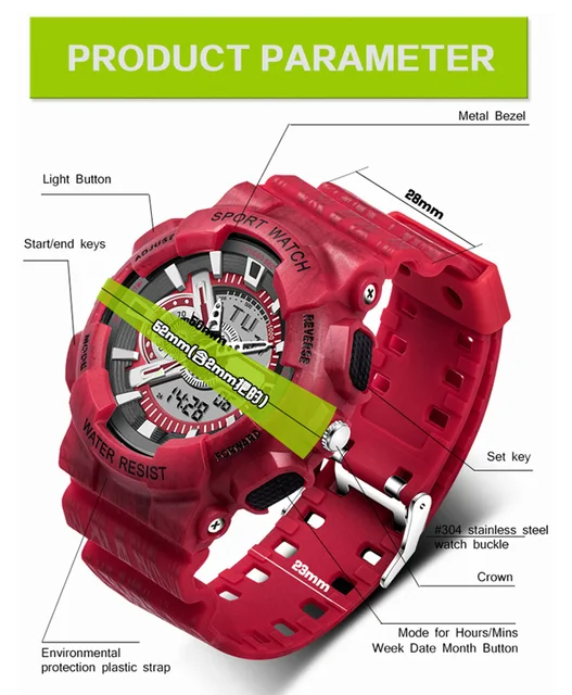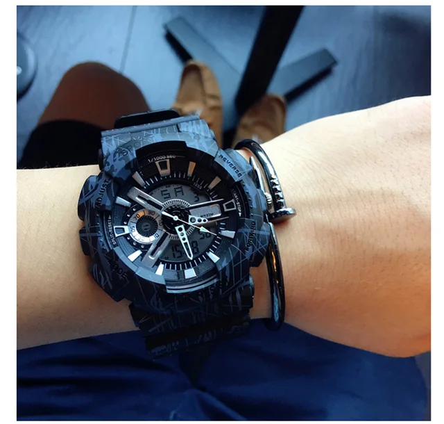 | [해외] LED 디지털 스포츠 레저 자동 방수 시계 남성 패션 시계 최고 품질 시계 육군 손목 군사 디지털 시계 |
