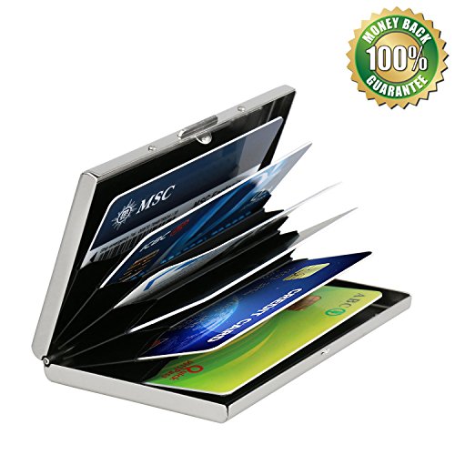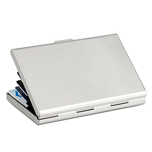 Credit Card Holder Organizer Identity Thieves & Electronic Pickpockets - Smooth Sleek RFID Blocking Stainless Steel Wallet Business Card Case Storage Protector for Men & Women