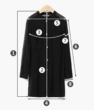 | 尺码 | ①前衣长 | ②后中长 | ③胸围 | ④下摆围 | ⑤肩宽 | ⑥袖长 | ⑦袖臂围 |