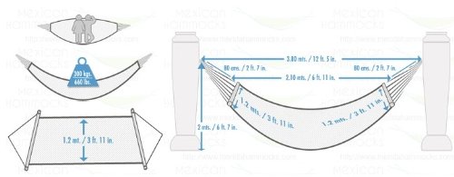 - Feature : Overall Length 12'5" x Width 3'11" / Dimensions of the bed itself is 6'11" in length and 3'11" in width / Maximum Carrying Capacity: 660 lbs / 80% Cotton, 20% Nylon. / Hanging hardware not included.