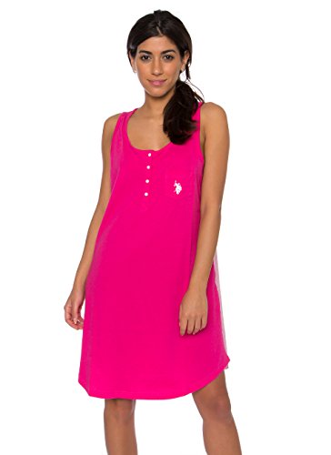 US Polo Assn. Women's Dorm ScoopNeck Tank with Woven Back Sleep Shirt Pink L