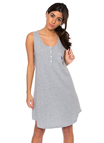 US Polo Assn. Women's Dorm ScoopNeck Tank with Woven Back Sleep Shirt Grey L