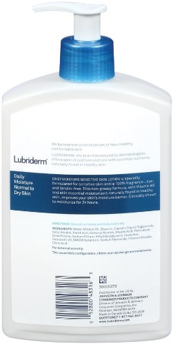 Moisturize and protect sensitive skin from dryness with Lubriderm Daily Moisture Lotion for Sensitive Skin. The 100% dye-free, fragrance-free and lanolin-free formula is specially designed with gentle moisturizers for dry, sensitive skin, all in a clean, non-greasy formula.Feature