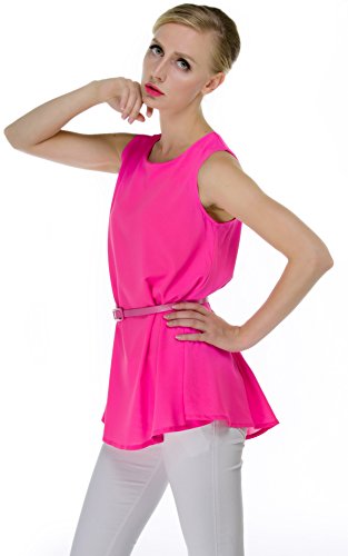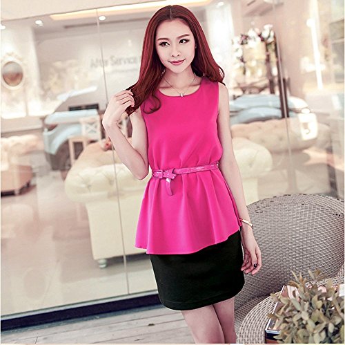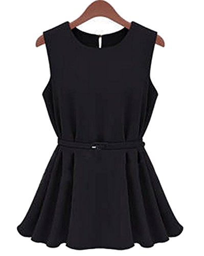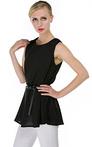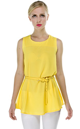 -. Title : Amoin Women's Chiffon Vest Shirt Sleeveless Shirt Scoop Neck with Belt