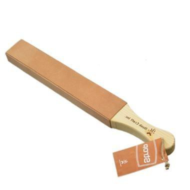 パドルストロップの4面にレザーを配置したオールサイドパドルストロップ(革砥)です。ナイフ専用なので全て床面(ザラザラ面)としています。 |