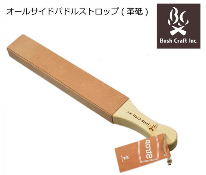 | パドルストロップの4面にレザーを配置したオールサイドパドルストロップ(革砥)です。ナイフ専用なので全て床面(ザラザラ面)としています。 |