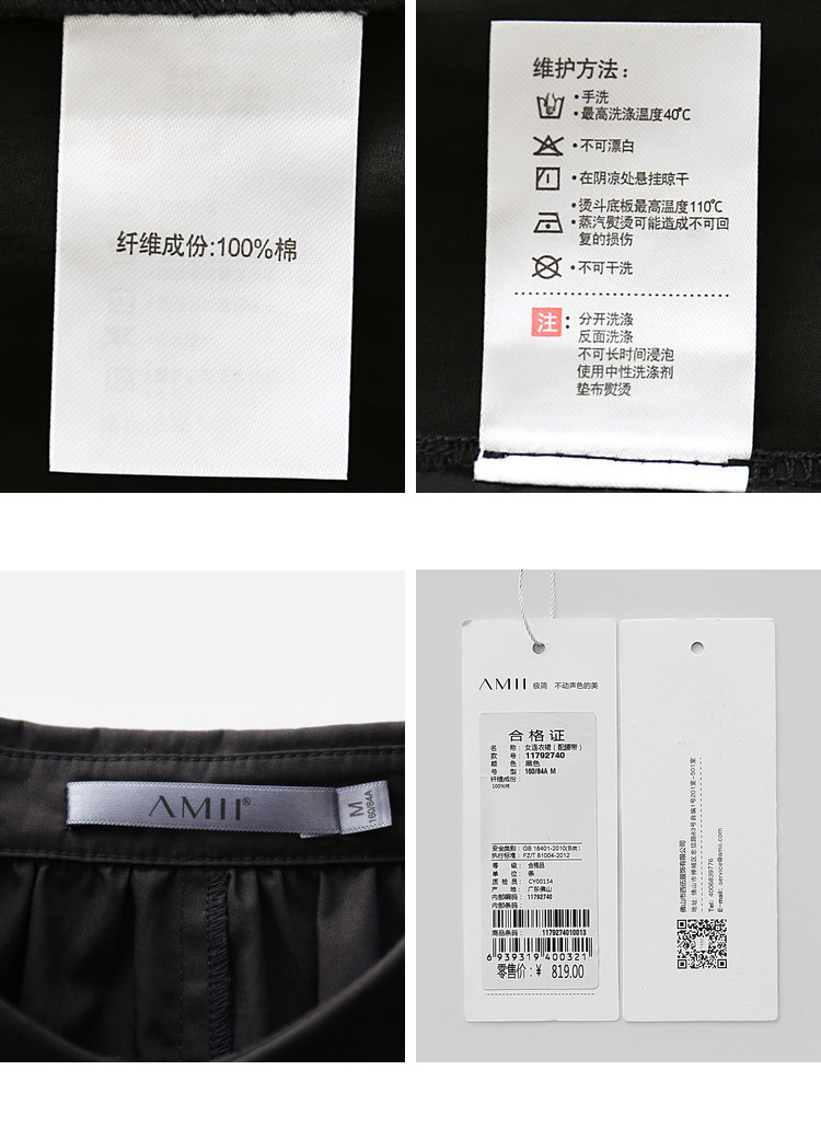 洗涤标准:不可浸泡不可干洗不可漂白40℃以下手洗110℃以下垫布熨烫悬挂晾干